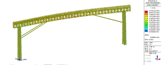 标准组合下加固后灯桥位移计算结果如下图16-图18所示。