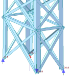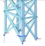 由上图可知,标准组合下灯桥最大竖向位移为-97.73mm,最大横向位移为97.26mm,最大纵向位移为26.11mm。相比加固前灯桥竖向、横向位移降低明显,满足相关规范竖向L/400、横向L/200的位移要求,故加固效果显著。