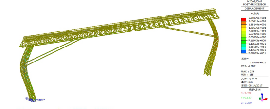 4.标准组合下加固后灯桥一阶屈曲模态计算