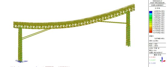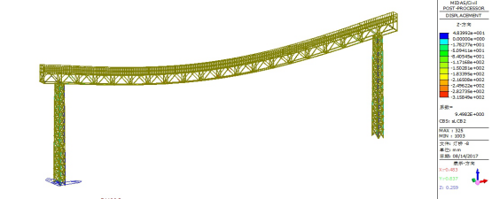标准组合下原灯桥位移计算结果如下图6-图8所示。