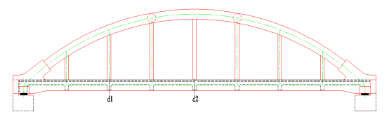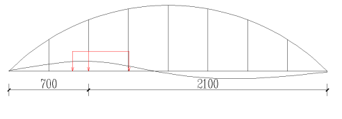 工况2:主拱及系梁L/4截面最大正弯矩加载;