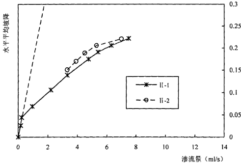 >0.60,Q=0.23 ml/s。图7为渗流量和水平平均水力坡降的关系曲线,可以看出,在此水头范围内,渗流量和水头基本呈线性关系。