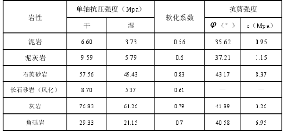 表1 巫山段库岸岩体的主要物理力学参数表