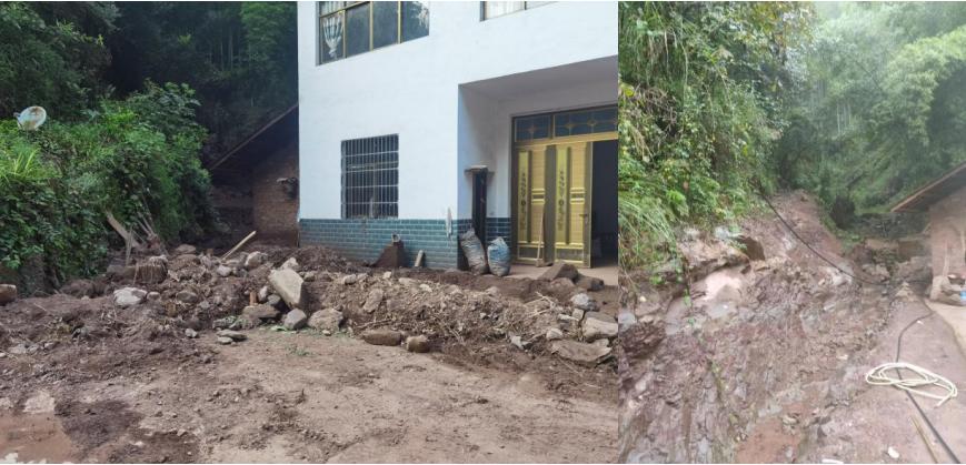 另外七里沟泥石流西侧同样发育冲沟,但坡降比王大坤位于沟口位置,且受7.4暴雨影响,水流溢出原有排水沟,冲刷房屋,存在一定安全隐患。