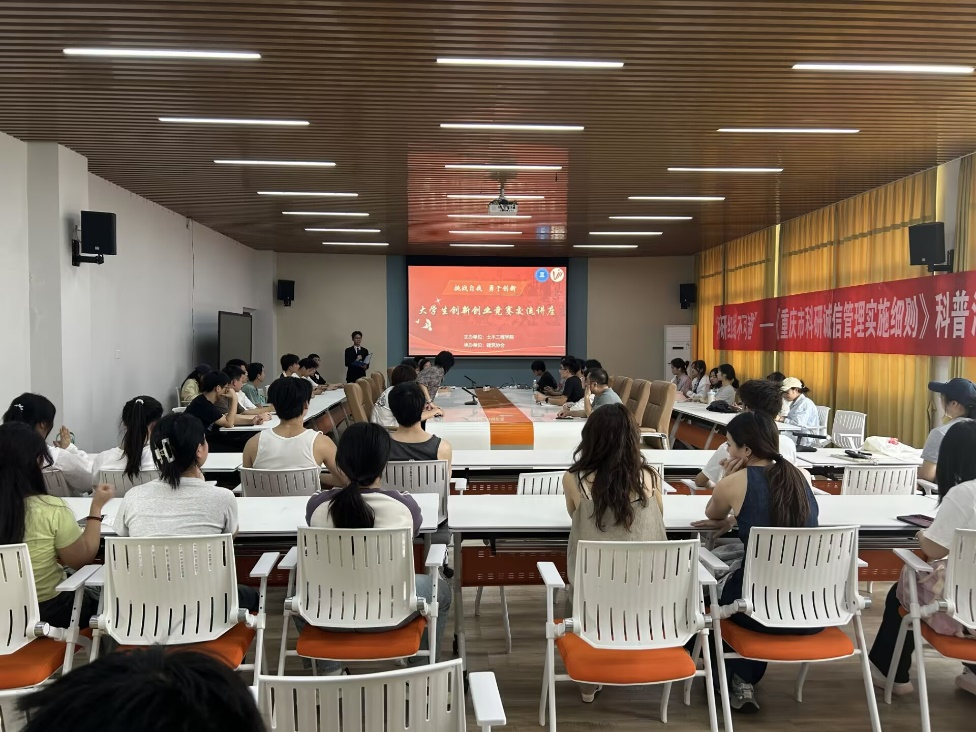 然后,闫磊以“挑战自我、勇于创新-老员工创新创业竞赛交流”为题,开启了指导员工参加挑战杯的征程,详细讲解了挑战杯的赛事框架、参赛要求、奖励措施以及注意事项等关键信息,希望同学们把高校创新教育与破解产业实际问题有机结合,分享了自己团队获得重庆市挑战杯大赛特等奖的经验。随后,他也对其他专业竞赛进行了一一介绍,希望同学们在报名参加各种赛事时,要理解规则、掌握赛制,通过组建员工团队及指导老师的沟通谋划认真选题、明确赛道,明确思路和课题后再不断打磨,帮助同学们理清思路,更充分地备赛,现场气氛热烈,同学们参与热情高涨,也积极向闫教授提问。