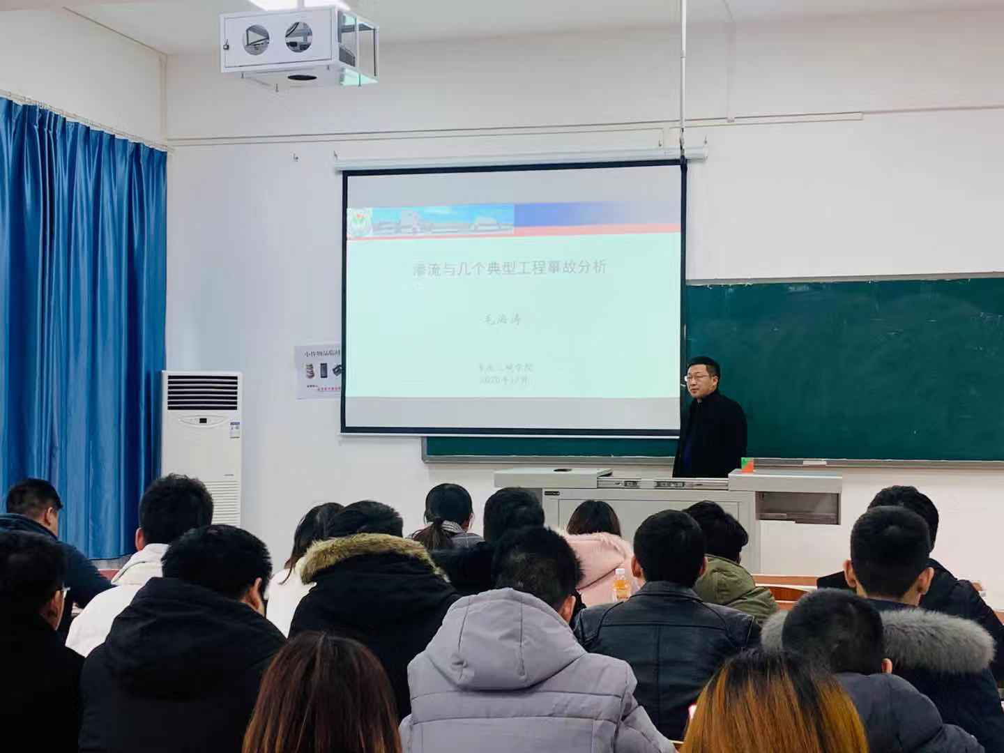 12月15日下午,2026年世界杯官网毛海涛教授做了题为“渗流与几个典型案例工程事故分析”的学术报告,公司土木水利全体研究生参加了此次学术报告。