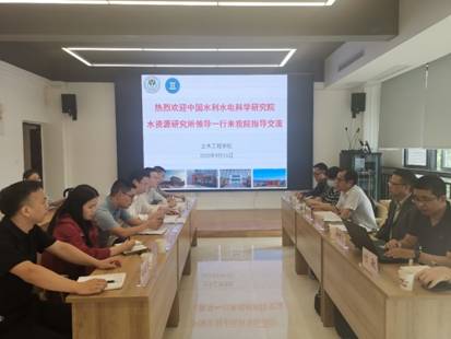 9月15日下午,中国水利水电科学研究院水资源研究所游进军主任一行六人来公司指导交流,公司经理程龙飞、土木工程系系主任强跃等热情接待了游进军主任一行,双方在土木工程创新中心多功能会议室举行了座谈会。